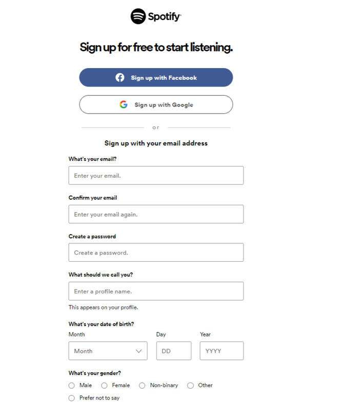 Go here: https://www.spotify.com/us/signup and sign up using your email or FB account